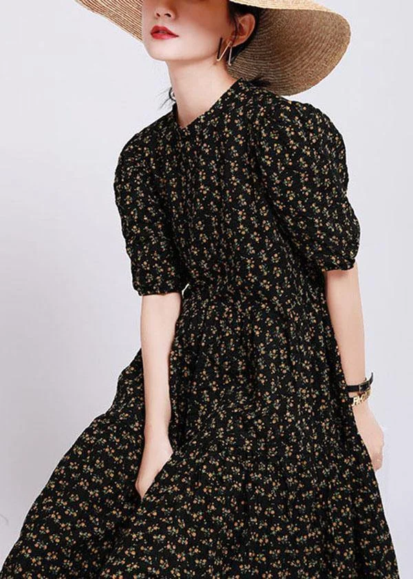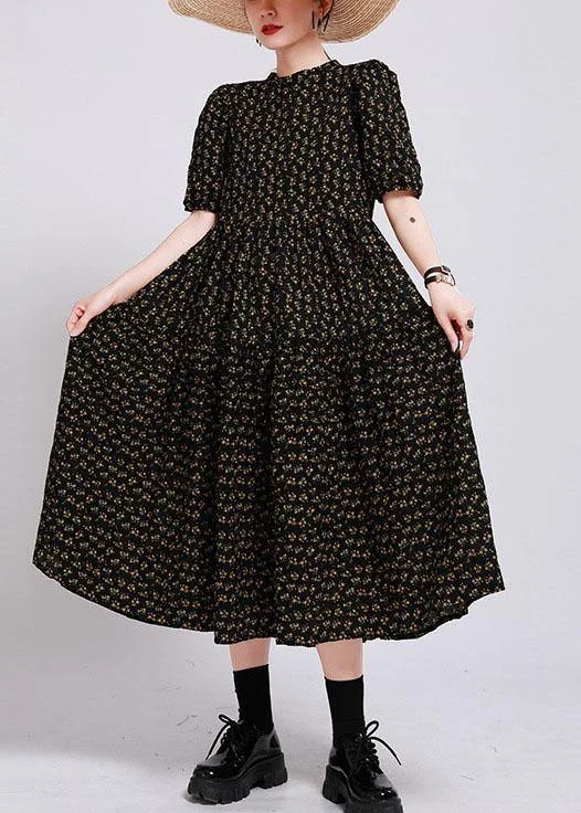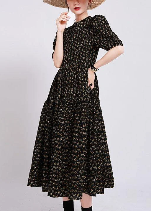 Women Black Print O-Neck Circle Summer Party Dresses Half Sleeve